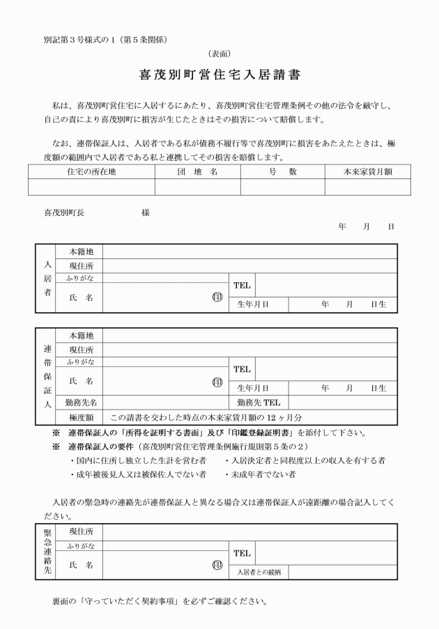 ○喜茂別町営住宅管理条例施行規則