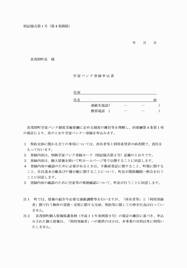 (1) 喜茂別町空家バンク登録カード(別記様式第2号)